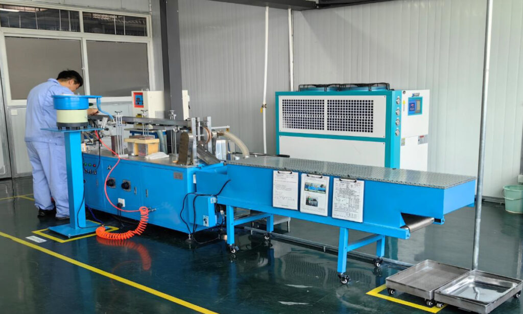 ゆるみ止めネジ用粉体コーティングシングルレール加工機